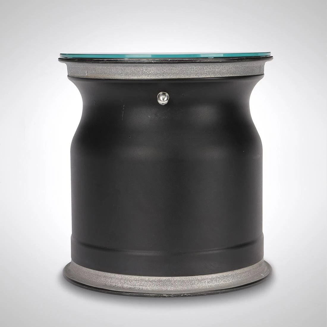 Bring the action of the track into your home or office, with this sleek table crafted out of a race used Renault F1 Team front wheel rim.