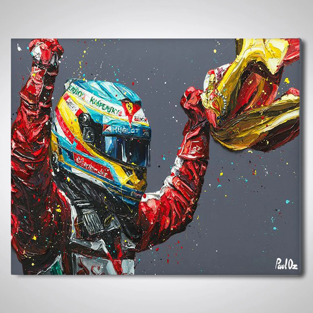 We are proud to present to you this limited-edition official Paul Oz print which portrays Fernando Alonso after his win at the 2013 Spanish Grand Prix. Â