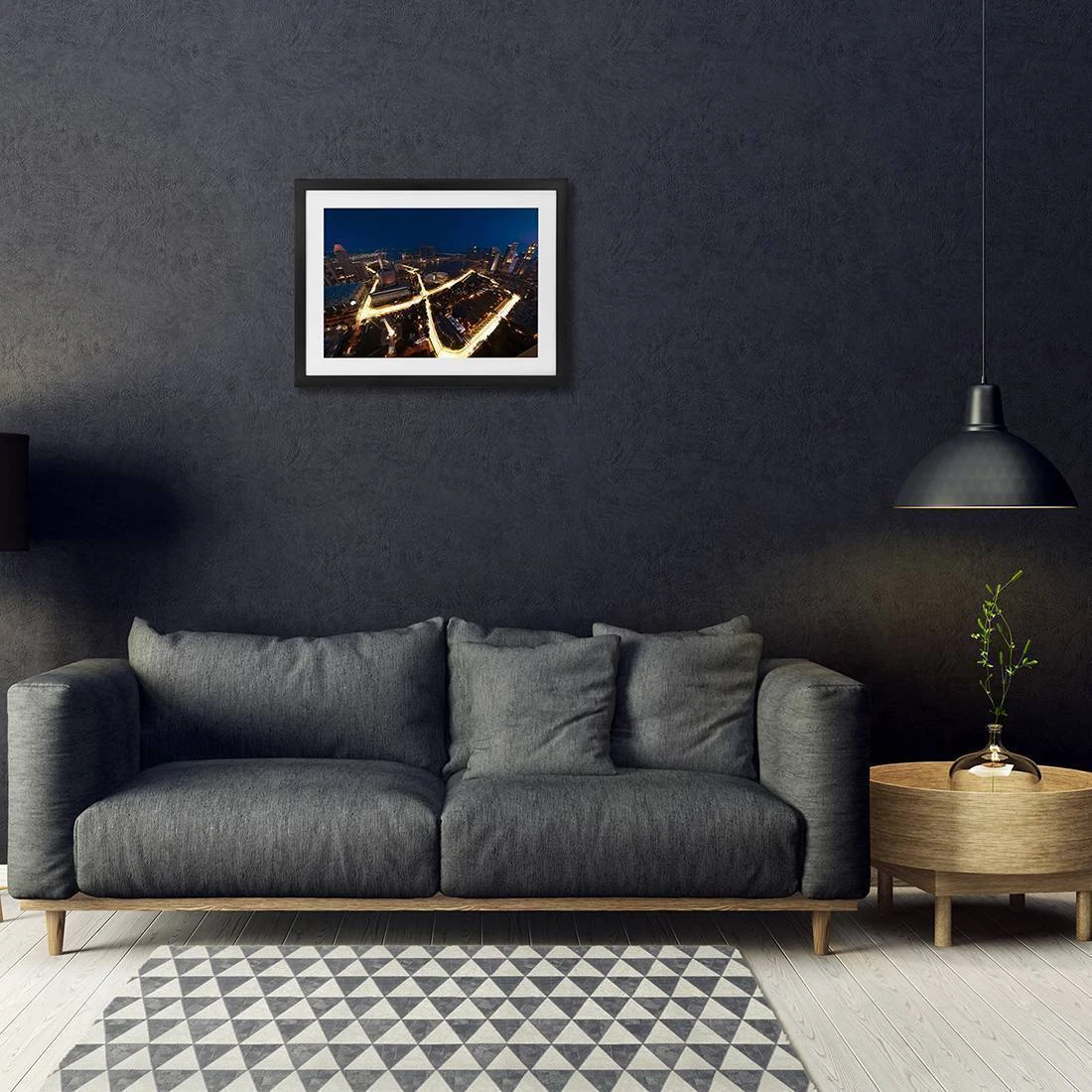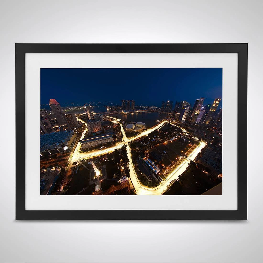 This atmospheric print shows the aerial view of the iconic Singapore Grand Prix night circuit.