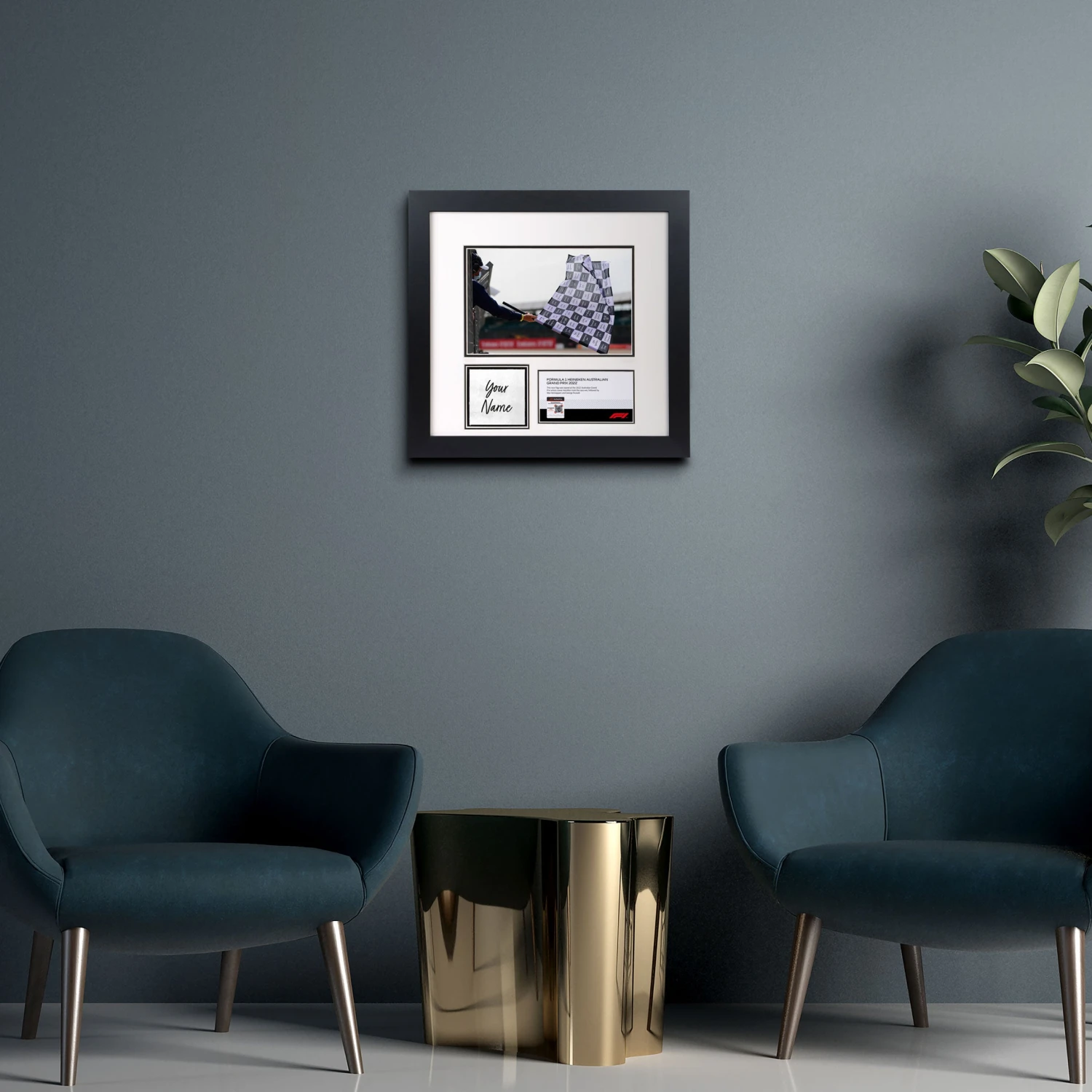 Please note the photo used in the frame will be specific to the race that the flag was used at and will be taken by a professional F1® photographer at each circuit.