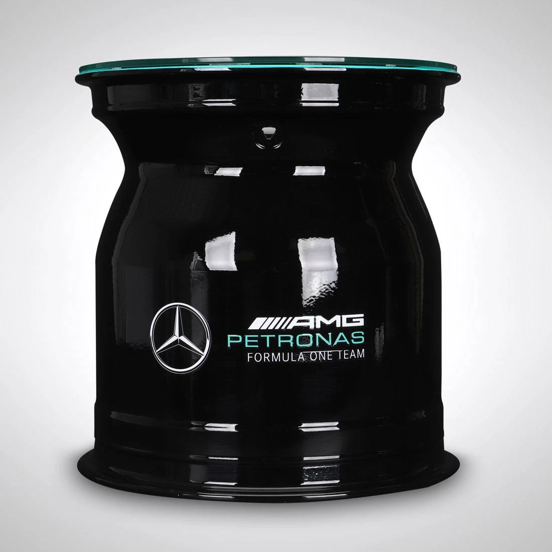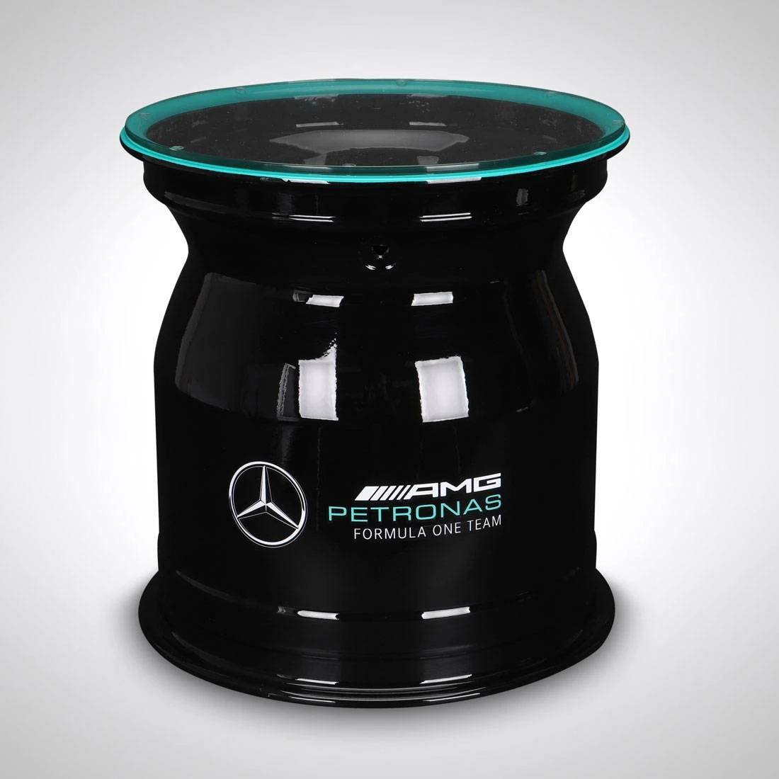 Own a genuine piece of Mercedes-AMG Petronas Formula One Team, with this F1 table, re-engineered from a race-used front wheel rim.