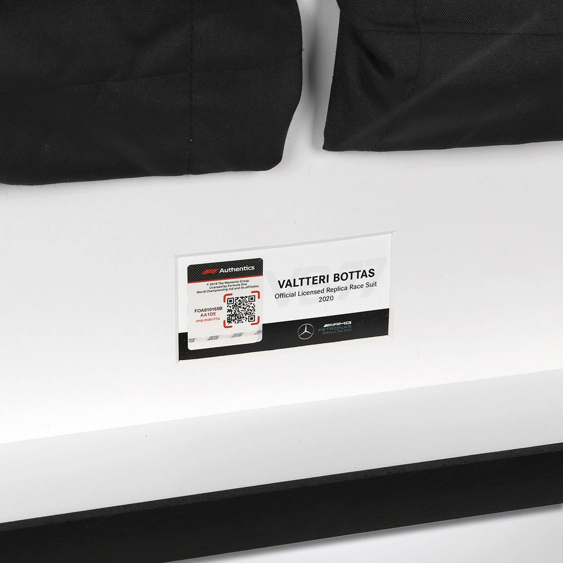 This race suit was made for Valtteri for the 2020 season, in which he claimed two victories and finished second in the Drivers’ World Championship. Although unworn, this suit would have been part of his official collection and features the same liveries and branding as his race used suits.