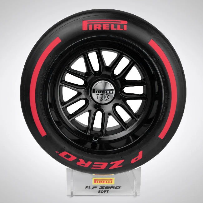 This tyre does not feature the same engraving that you would see on an actual ‘Pirelli Pole Position Award’ which commemorates the driver with their name and pole lap time.