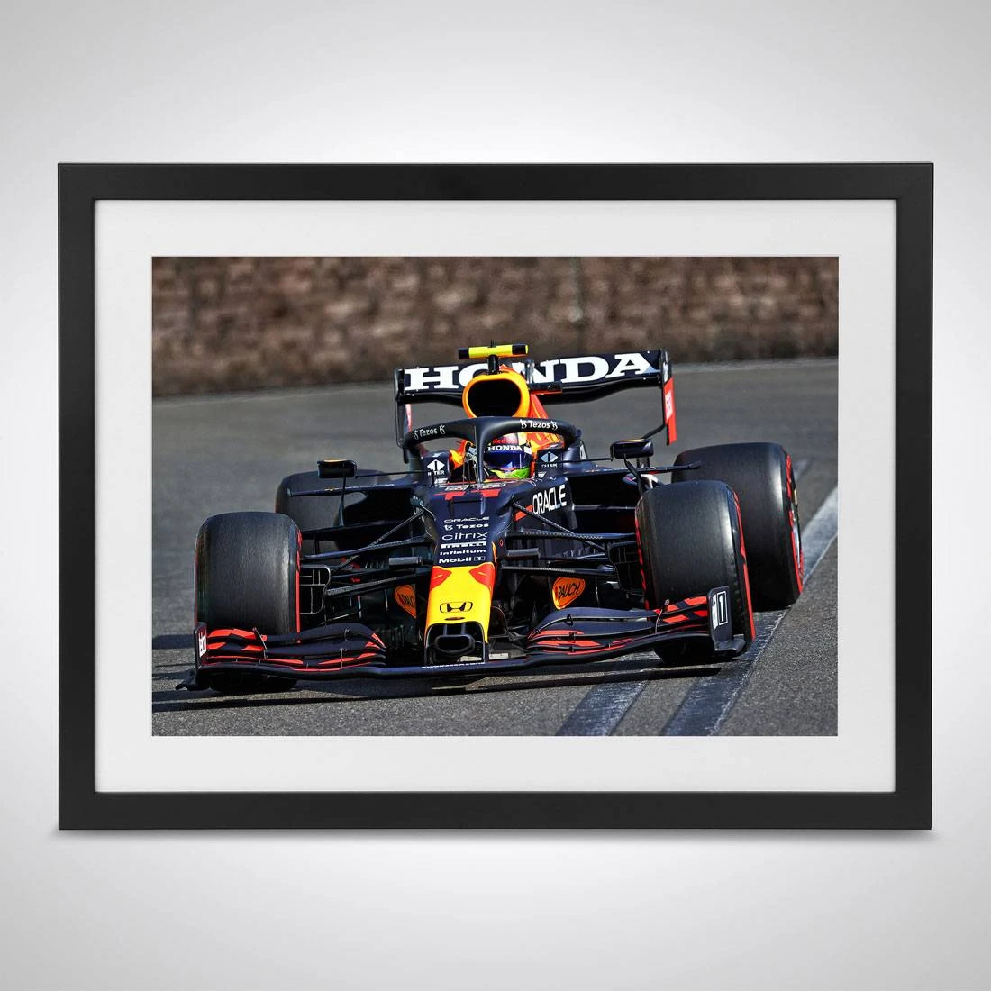Celebrate Sergio Pérez’s first victory with Red Bull Racing, claimed at the 2021 Azerbaijan Grand Prix, with this special framed print